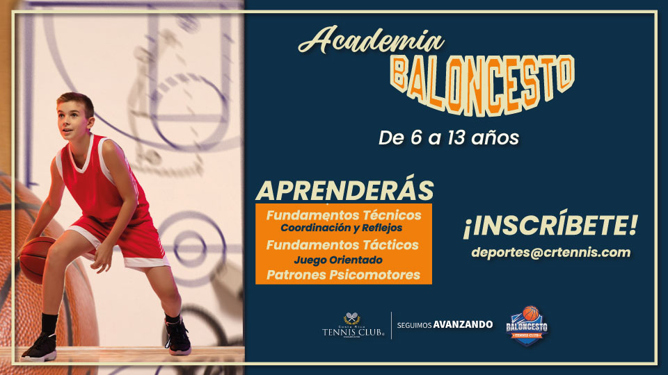 Baloncesto Una cancha de baloncesto bajo techo donde podrá jugar cuando lo desee. Vive el baloncesto en el club Desde clases para niños hasta mejengas, el baloncesto en nuestro Club ofrece una experiencia deportiva completa para todas las edades y niveles. 1 Gimnasio Multiuso Academias Para edades de 4 a 18 años Graderia Para 200 personas ACADEMIA BALONCESTO ACADEMIA DE BALONCESTO BBP Entrena con nosotros, sube de nivel Sujeto a disponibilidad. Consultar con la Caseta de Tenis. Comencemos